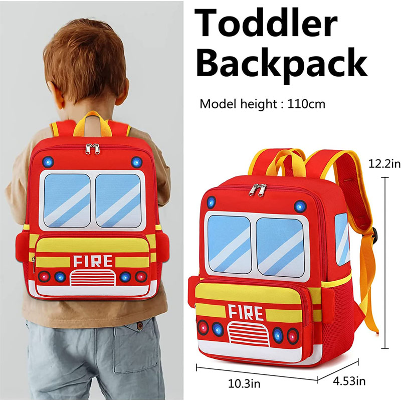 · Cəlbedici təfərrüatlar - 3D ekskavator təkərləri olan super sevimli oğlan məktəbəqədər yük maşını kürək çantası, əks etdirici zolaq gecə və ya dumanda aşkarlanmağı asanlaşdırır. Çiyin qayışları nəfəs alan və rahatdır, sinə kəmərləri isə çantanı yerində saxlayır. Aşağıda sürüşməyə qarşı zərrəciklər var ki, onlara lazım olduqda yerə qoyula bilər.